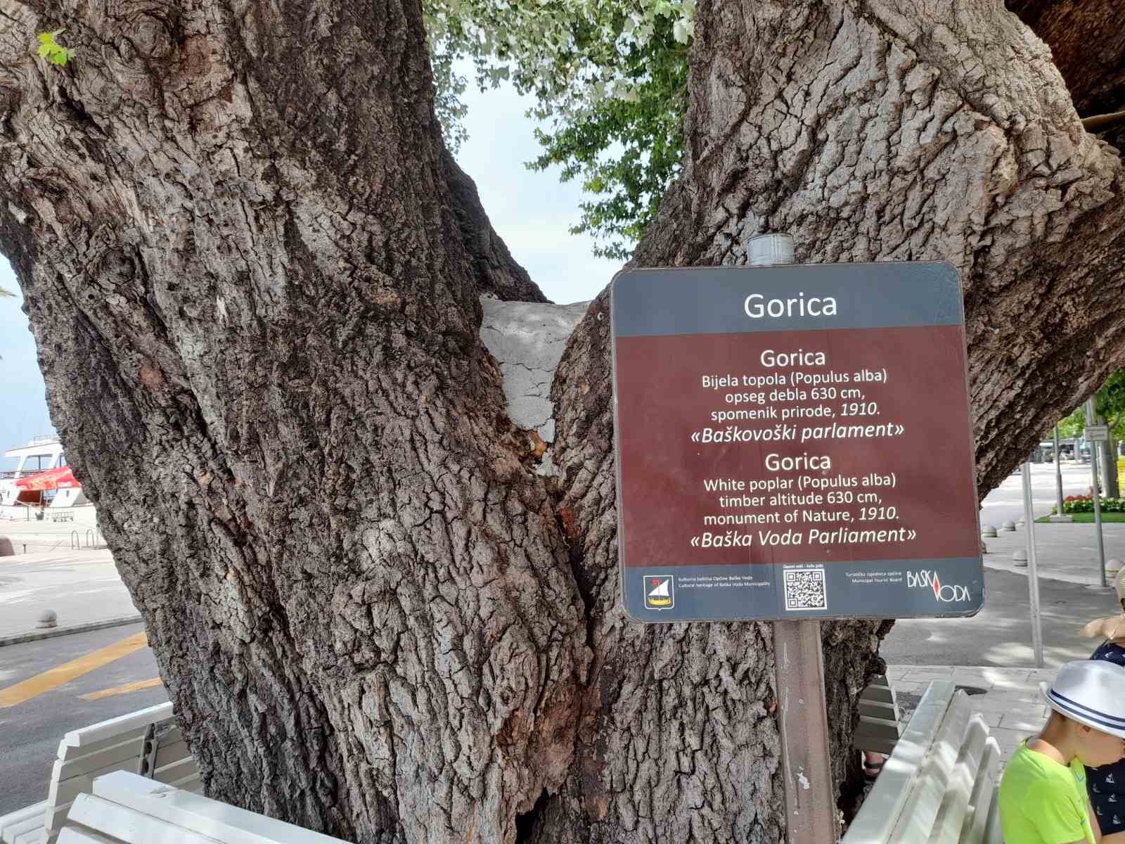 Дакле, умјесто превремене сјече, предлаже се редовно и стручно одржавање овог стабла и на њега стављање табле која јасно указује да се ради о споменику природе па и клупе за предах. На фотографији показујемо примјер како је урађено у Башким Водама (Хрватска) са једном бијелом тополом. Тим прије што се ова црна топола налази у само центру Челинца.