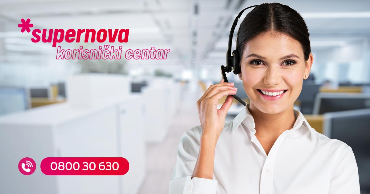 Korisnički centar Supernove uveo je novi broj 0800 30 630 preko kojeg možete da dobijete željene informacije o uslugama i servisima koje su dostupne u okviru Supernova ponude.