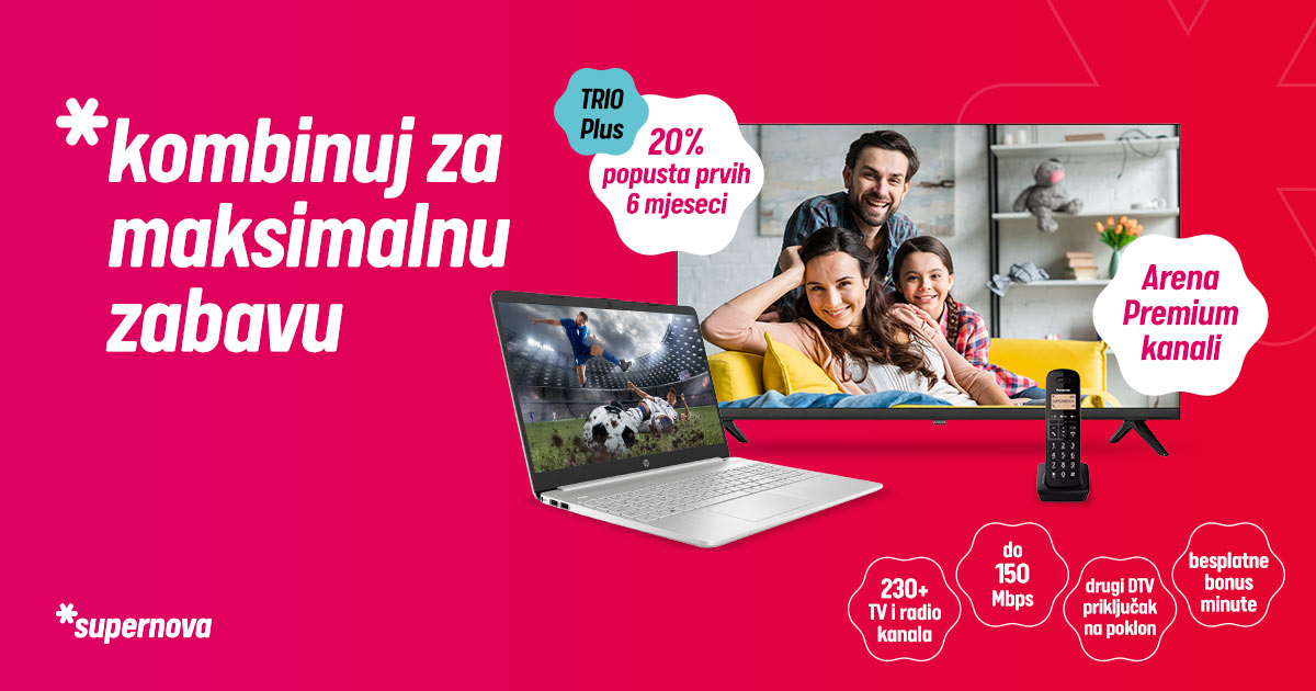 Izaberite jednu ili paket usluga u Supernovoj i iskoristite popust od 20 odsto na mjesečnu pretplatu prvih šest mjeseci.