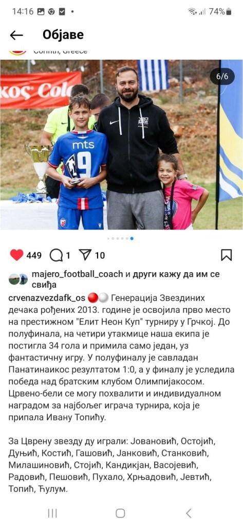 О каквом фудбалском таленту је ријеч свједочи и објава на фејсбук страници београдске „Црвене Звезде“ која гласи: